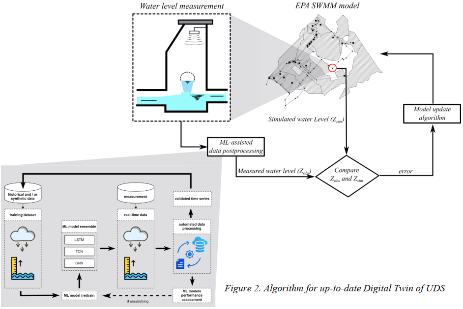 Digital Twins of Urban Drainage Systems: ML-assisted algorithm for processing sensor data
